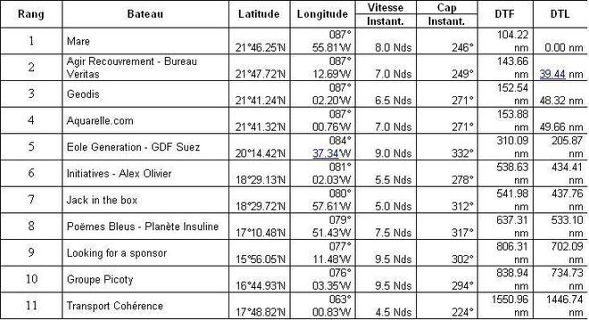 Marc Lepesqueux (Mare) : "On a un peu de pression. Le vent est tombé. Il faut qu'on s'accroche. La fin de course ne sera pas facile. On a 30% d'avance. Il nous reste 120 milles et Agir Recouvrement est revenu à 40 milles derrière. On va gérer cela. Nous serons vigilants dans les derniers milles. Il fait encore nuit, nous faisons des réglages, des manœuvres. Il y a un peu de lassitude ce matin. On a les odeurs de la terre, en passant la pointe du Yucatan."