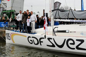 Cette journée de veille de départ a été marquée par une visite qui n'est pas passée inaperçue ce samedi à midi sur le village de la Solidaire du Chocolat : celle d'Amélie Mauresmo. L'ancienne n°1 mondiale de tennis a baptisé le bateau Eole Generation - GDF SUEZ skippé par Sébastien Rogues et Bertrand Delesne qui viennent tout droit du circuit mini 6.50 pour disputer leur première course en Class40.