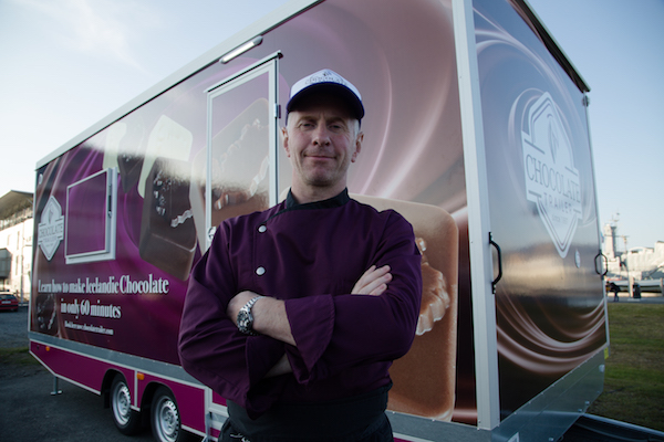 S’il existe très surement plusieurs ateliers de confection de chocolat ouverts au grand public, la version de Halldór Kr. Sigurðsson est sans aucun doute très originale. En effet, afin de pouvoir aller à la rencontre du plus grand nombre et de ne pas dépendre d’un espace fixe, il a décidé d’installer son atelier dans une grande remorque rattachée à un camion. Ainsi tout le matériel nécessaires aux initiations est à portée de main, plus besoin de se fournir en fonction de l’endroit et l’espace correspond à toutes les conditions requises pour faire un délicieux chocolat. Offrant un espace chaleureux et convivial, la remorque permet aussi une grande mobilité à la fois sur le territoire islandais que dans le monde entier si la demande est formulée. Adaptable aux envies et aux besoins c’est une solution idéale pour le confiseur qui enseigne ses techniques aux touristes et aux locaux depuis 1997.