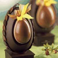 Un superbe oeuf dans l'œuf, garni d'une farandole de petits oeufs, posé sur un coffret en chocolat composé d'un assortiment de délicieuses ganaches de la Maison du Chocolat.