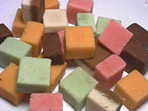 La pâte d’amande est une composition essentiellement de sucre (66%), d’eau, de liant (blanc d’œuf, glucose), d’amandes (33%) et divers parfums.