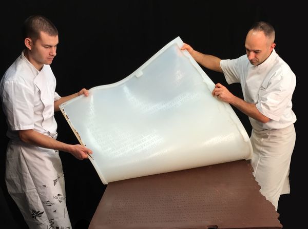 Démoulage de la Table Claudienne en chocolat©Roberto Vargiolu LTDS-ECL-CNRS