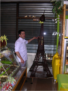 Le chocolatier Laurent Demoncy de la pâtisserie de l'Eglise lui rend un hommage chocolaté, à l'occasion de la candidature française au JO pour 2012. Une grandeur à la hauteur de la grande dame, pas moins de deux mètres de chocolat à faire tenir debout. Un exploit réalisé par ce chocolatier Laurent Demoncy !