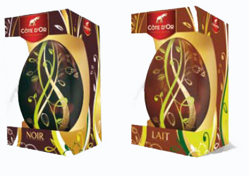 Collection Oeufs décorés Côte d’Or : Oeuf Chocolat Noir 180 g, Oeuf Chocolat au Lait 180 g