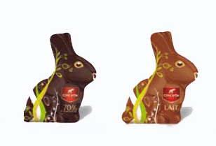 Aux côtés de l’oeuf décoré, le LAPIN est, lui, enveloppé d’un bel habit de saison. Par sa forme ludique, il séduira petits et grands. Par ses recettes au chocolat noir Côte d’Or 70 % cacao ou au chocolat au lait Côte d’Or, il séduira les plus gourmands.
