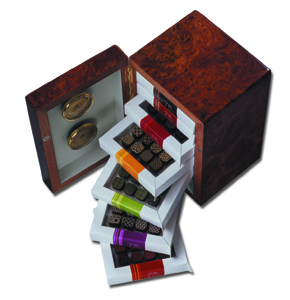 L'œil s'offre un plaisir esthétique : le " designer du chocolat " reste fidèle à son image première qui le démarque des autres. Ses chocolats sont tout simplement beaux : il les veut parfaits, lisses, brillants, sobrement illustrés d'une sérigraphie qui laisse deviner les sensations à venir…