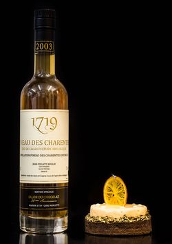 Exposés en dégustation au stand D15 de Carl Marletti, la « Tarte Sichuan » et le Pineau des Charentes seront accompagnés entre autre des tablettes de chocolat, des gâteaux au chocolat.