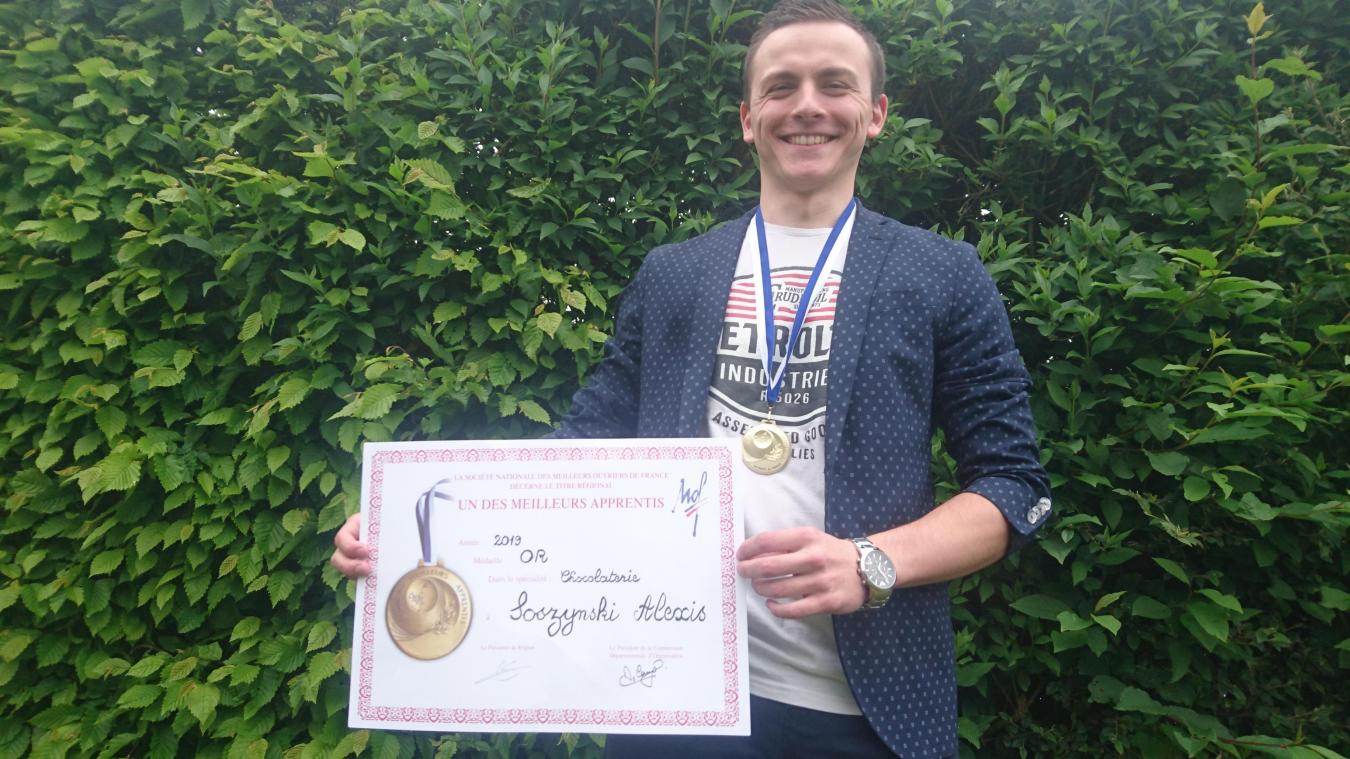 Lors du concours apprenti-chocolatier de la région, Alexis n’avait que cinq heures pour persuader les jurys. Ses créations comprennent : 30 bonbons pralinés aux amandes, 28 bonbons moulés avec une base de vanille, une pièce de 400 grammes, 6 tablettes avec une base caramel sont les œuvres de ces longues heures. Pour les pralinés aux amandes, le jeune homme est resté sur la pureté de l’amande, mais en remplaçant une partie du sucre par du glucose, moins sucré. Le bonbon vanille comprenait de la confiture de cassis, avec une coque fine de chocolat tandis que ses tablettes de caramel se sont mêlées à la bergamote a décroché un brillant 19,3/20 et s’est qualifié pour l’étape supérieure. Devant son succès et sa réputation grandissante, le jeune chef ne cesse pas d’évoluer.