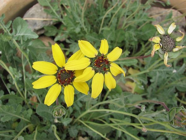Originaire d’Amérique du Nord, la Berlandiera lyrata, de son nom latin, a de petits pétales jaune pétant en forme de lyre et un cœur mêlant tons de marron et touches de jaune. Dans son habitat naturel, elle fleurit du printemps jusqu’à l’arrivée du gel pendant lequel elle reste en latence.