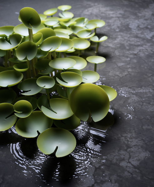 Cette couleur référente permet à l’artiste d’explorer le thème de l’eau et on retrouve l’élément représenté de différentes manières à travers ses pièces chocolatées. Si l’eau est prédominante, la terre, l’air et le feu y sont également représentés. Le chocolatier s’est toujours inspiré des quatre éléments pour créer, et s’il a essayé de s’exprimer à travers d’autres matériaux, comme la céramique, il revient toujours au chocolat.