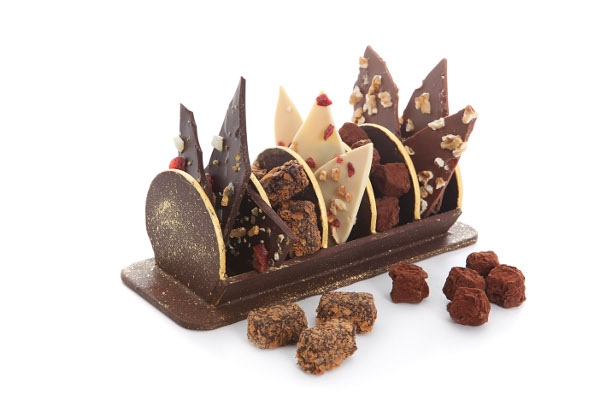 Avant de fondre pour la Boule Bonbonnière de chocolat noir emplie de Truffes fondantes et moelleuses, nul doute que vous serez surpris par la Bûche de Noël revisitée par l’Atelier du Chocolat : un voyage gustatif et pétillant dans le monde du Chocolat qui ravit les yeux par son originalité et ses éclats de couleurs.