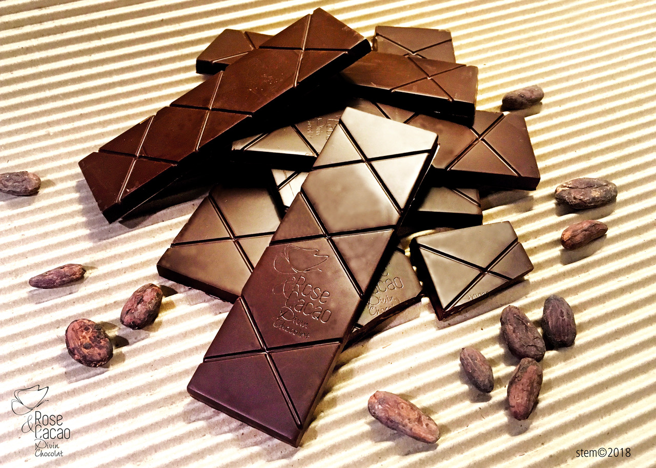 Tout procédé impliquant une chauffe des aliments a pour conséquence une diminution des nutriments qui le compose. C’est pour cette raison que Rose & Cacao travaille à partir de fève crue. Leur chocolat sont naturellement vegan, sans gluten, à faible index glycémique, cru, et bien évidemment biologique et équitable ! Tous les produits viennent de l’agriculture biologique. Les fèves utilisées sont uniquement du type criollo, appelé également “la reine des fèves” grâce à la subtilité de ses arômes, et sa douce amertume. Les chocolats Rose & Cacao sont à la fois gourmands et originaux, car toutes les tablettes sont moulées de manière artisanale.