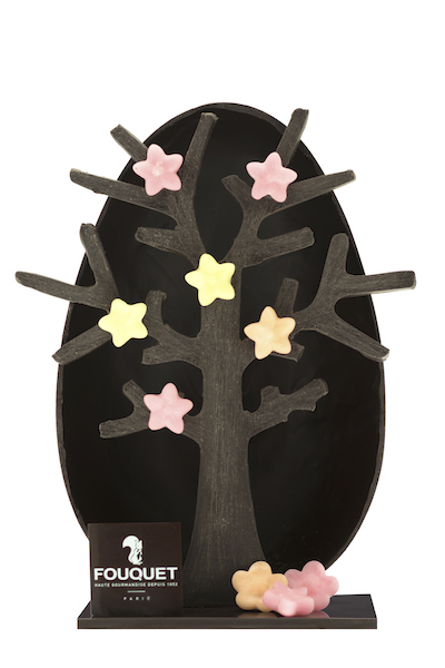 De petites fleurs en fondant ont été déposées sur un arbre printanier composé de chocolat noir, faisant de cette confiserie traditionnelle une création élégante et fraîche. Le célèbre œuf de Pâques revêt des fleurs de pensées, délicates et comestibles, collées grâce à une pointe de chocolat. Difficile de résister à l’air malicieux des Trois Chouettes, dernière création printanière de Fouquet. Inspirées des Trois singes de la Sagesse, les chouettes qui ne voient pas, n’entendent pas ou ne parlent pas sont toutes garnies de chocolats.