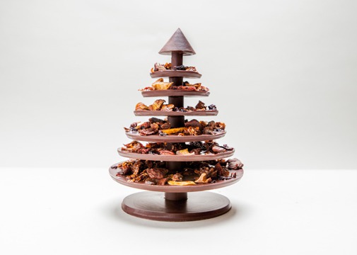 Cette année, la Manufacture Alain Ducasse réédite son Arbre de Noël à monter : un sapin graphique aux allures simplistes mais résolument gourmandes. Composé de disques de chocolat noir ou au lait, garnis généreusement de céréales, noix et fruits confits, il s’assemble avant dégustation en famille ou entre amis. Une création exclusive signée Pierre Tachon qui apportera une touche ludique et conviviale à vos repas et réveillon de Noël.