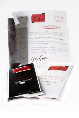 Avec ses 40% de calories en moins et sa composition 100% naturelle, le chocolat Guy Roux est donc quasiment comestible pour tous – diabétiques, sportifs, ceux qui craignent les caries, les kilos en plus ou le mauvais cholestérol provenant de la transformation du sucre… Et plus que comestible pour les plus fines affinités gustatives, un petit avant-goût Prestige sans sucres ajoutés : croquant chocolat-amandes torréfiées ; Caprices d’Eden noisetines ou amandines, enrobés de praliné, chocolat noir et poudre de cacao ; pâtes (ou plutôt crèmes de plaisir) à tartiner sans lactose, nature, cannelle, pépites ; Potion Ancestrale pour chocolat chaud 75%…