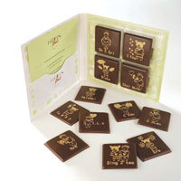 Envoyez vos messages d'amour, d'amitié, ou de boulot sur palets de chocolat issus du commerce bio équitable. Une formidable idée-cadeau que Jean-Paul Hévin fin janvier 2004, dans tous les points de vente Hévin Bis.