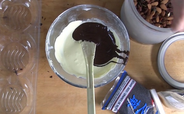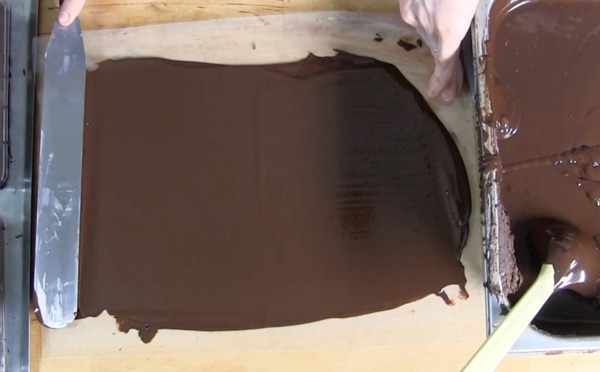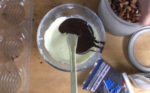 Technique du chocolat fini Je vais vous montrer en fait un point où quand vous avez fini votre chocolat, vous pouvez faire des choses sympas, assez rapides, vraiment superbes. J’ai pris un moule pour mettre le chocolat qui me reste. Il me restait un fond de chocolat blanc et un fond de chocolat noir, je n’ai pas encore...
