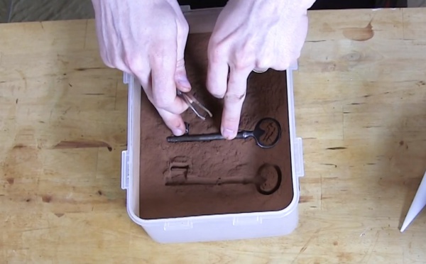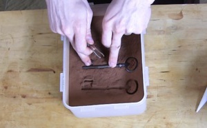 Apprenez cet effet vieilli chocolat avec une clé ancienne Dans cette méthode de décoration, j'ai de la poudre de cacao que j'ai mis dans une boite hermétique. On va faire l'empreinte d'une clé, l'outil le plus classique pour ce type de décoration. On va faire une empreinte dans le poudre de cacao d'une clé assez ancienne....