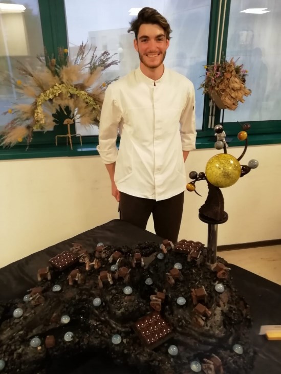 Le vendredi 18 octobre 2019, il est devenu le meilleur apprenti de France en chocolaterie. 1re année BTM chocolaterie à l’EPMT, il a remporté la seule et unique médaille d’or du concours ! Le concours a eu lieu au CFA de la Faculté des Métiers de Cannes La Bocca et 7 meilleurs apprentis chocolatiers, venus de toute la France, se sont affrontés pour cette médaille d’or nationale. Avec son formateur Bastien Delapierre, il s’était entraîné sur une épreuve de 5 heures comprenant la réalisation d’une pièce en chocolat sur un thème libre, 30 bonbons en pâte d’amande, 20 bonbons moulés ganache vanille et 6 tablettes fourrées. Le jury était constitué de grandes personnalités comme : le chef pâtissier Jean-Claude Canestrier, M. Jean-Marc Delacourt (MOF en 1992), le sous-chef pâtissier, Paul Occhipinti (MOF en 2018)...