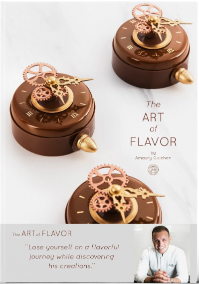 Cet ouvrage capte l’attention de tous les professionnels soucieux de présenter à leur clientèle une gamme qualitative et renouvelée. Ce livre est une aventure gourmande à travers laquelle son lecteur voyage sur différents continents. Il permet aux artisans de présenter à leurs clients une offre variée allant du simple petit déjeuner au goûter sans oublier les desserts de formule. L’étonnant parcours artistique de ce jeune chef pâtissier franco-suisse est à découvrir dans ce superbe ouvrage. À travers ses 12 pâtisseries signatures en trompe-l’œil, résultat de ses nombreux voyages et « master classes », ce jeune chef vise à partager son cheminement dans la création d’un dessert chocolat ainsi que sa vision de l’art. L’Amaury Guichon explique chaque recette par le biais des schémas, en illustrant également sa réalisation technique en pas à pas. Conçu comme un tour du monde en un an, ce livre respecte le rythme de l’année : 12 créations regroupées selon les 4 saisons. Avec beaucoup d’inventivité le chef laisse une place importante à la tradition des pays qui l’inspire comme le « Quail egg » de Venise, « Lemon pie » de Guadalajara, « Caramel clock » pour Genève, « Cigar » de Chicago…