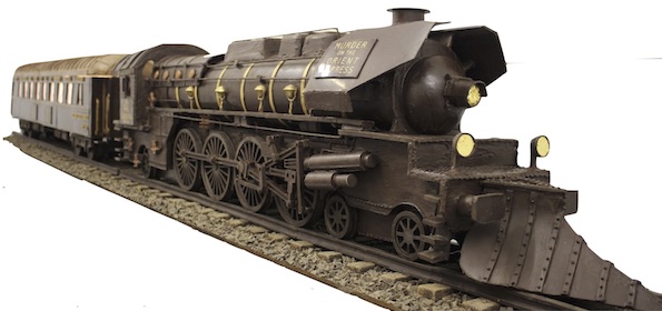 Exposé à la gare de Saint Pancras, près de la boutique Godiva, le train en chocolat mesure exactement 3 mètres de long. Pas assez grand pour monter partir en balade mais assez imposant pour pouvoir en contempler tous les détails. En effet, Jen Lindsey-Clark, a réalisé le design et la construction de l’œuvre dans les moindres détails, ajoutant des personnages dans les voitures, des rails avec des graviers en chocolat et même les petits éléments de machinerie. Sublimé par une finition dorée comestible, le train est composé de 60 kilos de chocolat Godiva noir et au lait. Et pour tous ceux qui seraient déçus de ne pas pouvoir le manger, la chocolaterie Godiva a développé pour l’occasion une nouvelle collection en édition limitée également inspiré du Crime de l’Orient Express.