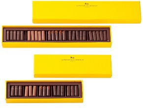 La Maison du Chocolat nous présente une gamme de cinq chocolats. Dans les ganaches on trouve des noires au poivron rouge, cuisinées au sel de Guérande et piment d’Espelette ou des natures corsées avec une pointe de sel de Guérande. Ces alliances subtiles permettent de capter le salé des légumes tout en jouant sur leur ambiguïté sucré pour une union parfaite avec le chocolat. Dans des tons plus doux, les ganaches lait aux oignons caramélisés et éclats de figues macérés au vinaigre balsamique présentent une alliance plus sucrée.