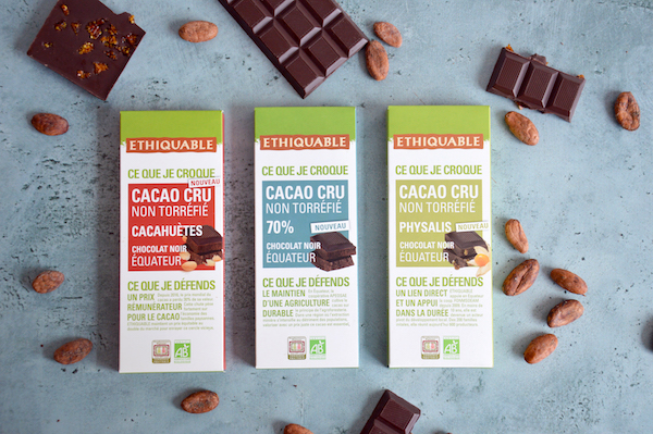 Grâce au travail acharné, la chocolaterie propose une gamme de trois nouvelles créations à déguster à tout prix et en tout circonstance. Avec des ingrédients délicatement sélectionnés et un savoir-faire unique, Ethiquable fait rêver tous les passionnés et amateurs de chocolat. Chacune de ces trois créations sont des cacaos grands crus équitables et bio pour le plaisir des papilles gustatives même des plus exigeants. La gamme de cacao composée de Pur, Sportif et Healthy XXL revisite les saveurs chocolatées dans le respect de toute la chaine de fabrication et des valeurs nutritionnelles di cacao cru. Pur est un cacao cru 70%avec des pétales de rose de Damas et des touches d’arômes d’amandes. Sportif est fait à base de cacao cru, de cacahuètes entières, d’arôme pour créer un contraste entre le croquant et le fondant. Healthy XXL est fabriqué à partir du cacao et de délicieux fruits tels que les pépins et la pulpe de physalis.
