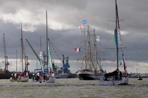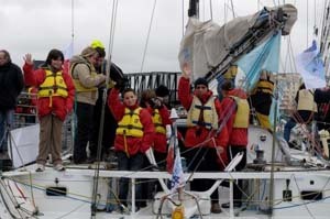 Ainsi que l’a justifié le directeur de course, Bernard Duval, ce matin, la dépression annoncée est bien arrivée dès 13 h. Elle est forte et passe sur Nantes avec son cortège d’averses. Des vents d’ouest, puis nord-ouest, de force 6 à 7, avec des rafales à 8, ont cueilli les équipages dès qu’ils ont largué les amarres à Nantes. « On n’a pas le choix de l’heure du départ. Nous avons des contraintes portuaires et de marée », a expliqué Bernard Duval. « Nous devons partir au plus mauvais moment… Mais c’est aussi le bel esprit de la Solidaire : partager une ambiance maritime, être ensemble, quelles que soient les conditions. »