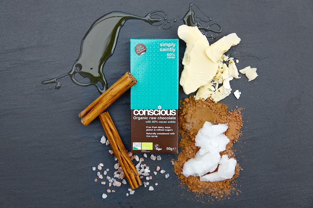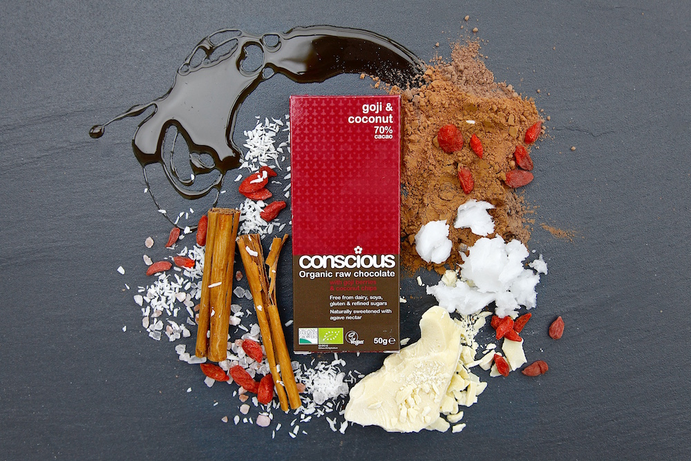 Conscious Chocolate est une chocolaterie basée à Grinstead Est à l’ouest de Sussex dont la singularité est la fabrication de tablettes de chocolats grand cru sains. En effet, ses équipes produisent leurs tablettes à base d’ingrédients bruts et sauvages délicatement sélectionnés. Sa certification organique et végétalienne lui confère une place de choix dans la bouche des personnes les plus exigeantes et qui ne veulent pas prendre du poids. Ses produits sont exempt de gluten, de produits laitiers et de soja ce qui lui confère le statut de chocolat végétalien. Conscious Chocolate utilise du nectar d’agave et du sirop de riz comme sucre ses créations.