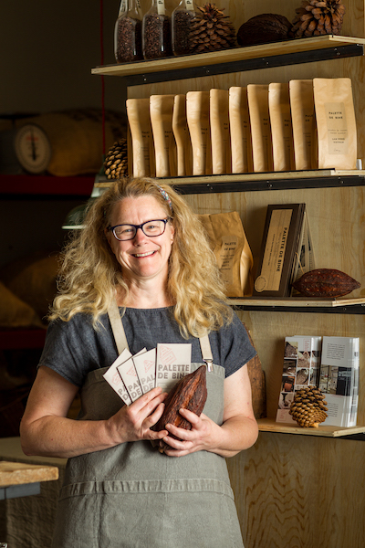 Palette de Bine est une chocolaterie du village de Mont-Tremblant au Québec produisant du chocolat à partir des fèves de cacao. Après une rencontre troublante avec des amoureux de chocolat, Christine Blais s’est auto formée au concept du Bean to Bar. Ainsi, cette dernière assure toutes les étapes de la fabrication du chocolat à partir des fèves. Elle se procure ses fèves auprès des producteurs, les torréfie, les transforme en chocolat sous forme de barres qu’elle commercialise. Ces tablettes sont faites à base de cacao et de sucre de canne à sucre afin produire des tablettes uniques au goût pur des fèves de cacao sauvage venues de Bolivie.