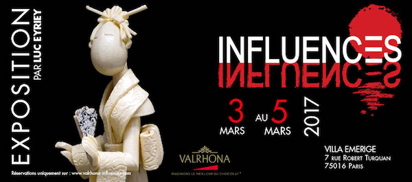 Après le succès en 2014 à la Cité du Chocolat Valrhona, l’exposition Influences s’installe à Paris à la Villa Emerige. Conçue par le pâtissier-chocolatier Luc Eyriey, l’exposition est composée de 16 saynètes d’environ 50 cm de haut retraçant les différentes influences entre les courants artistiques à travers l’histoire. Entièrement en chocolat, l’exposition éphémère est à la fois une expérience originale mais aussi un moyen de découvrir les œuvres d’art plus ou moins connues sous un nouvel angle. En effet, du japonisme à l’expressionnisme et du manga à la bande dessinée, l’exposition retrace à travers des influences très concrètes un panel extrêmement riche d’art à travers les générations et le monde entier. De plus, à l’issue de l’évènement, les 16 œuvres seront mises en ventes au profit de l’association « Les Blouses Roses » qui distrait les malades dans les hôpitaux.