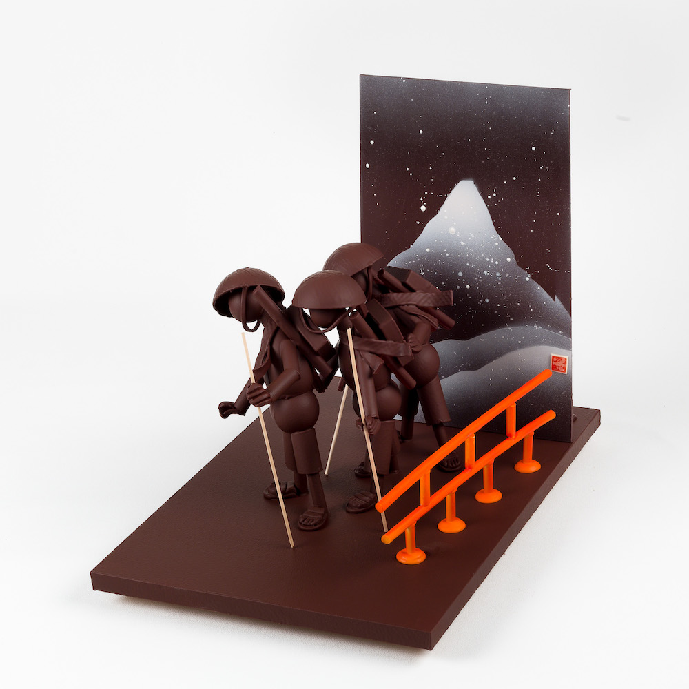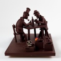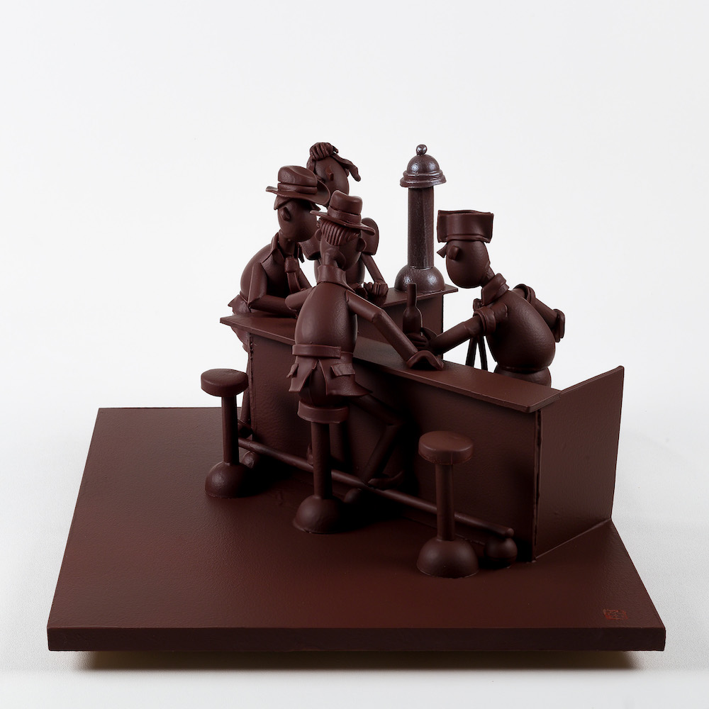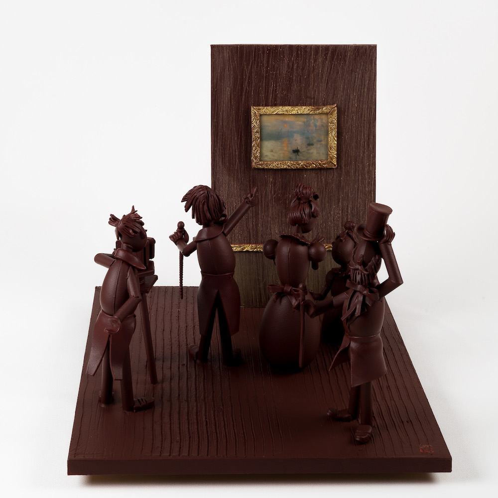 C’est grâce à une technique unique de montage de pièces en chocolat inventée par Luc Eyriey que les saynètes d’Influences prennent vie et deviennent des œuvres d’art et de savoir-faire hors norme. Cette technique permet de réaliser toutes sortes de sujets ou d’objets en partant de trois formes simples : l’œuf le tube ou la sphère. Ainsi, le chocolatier intervenant pour l’Ecole Valrhona et auteur du livre « l’Art du montage », désire créer un lien entre art culinaire et art graphique ou sculptural. C’est aussi l’objectif de l’engagement « Live Long Ensemble » de Valrhona qui cherche à mettre en avant les métiers de la gastronomie à travers le monde. Egalement investi artistiquement, Luc Eyriey nous démontre à travers cet événement inouï que quoi qu’il arrive, un courant artistique est toujours nourrit du passé et s’inscrit dans un mouvement beaucoup plus grand.