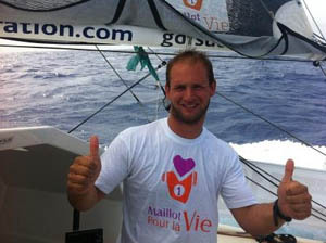 Jean Galfione (Initiatives-Alex Olivier) : « Le passage de Saint-Barth, c’est une première pour moi : je peux le dire maintenant, j’ai traversé l’Atlantique ! Les dernières heures ont été un peu compliquées ce qui a un peu atténué la fête. Physiquement ça va, faut récupérer de la petite nuit qu’on a eue. On passe le bonjour à tout le monde, au scolaire aux associations, on pense à vous tous les jours. On sent qu’on n’est pas que deux sur le bateau. On reçoit des messages d’enfants qui font vraiment plaisir : ça regonfle pour remonter sur le pont, et reprendre la barre ! »
