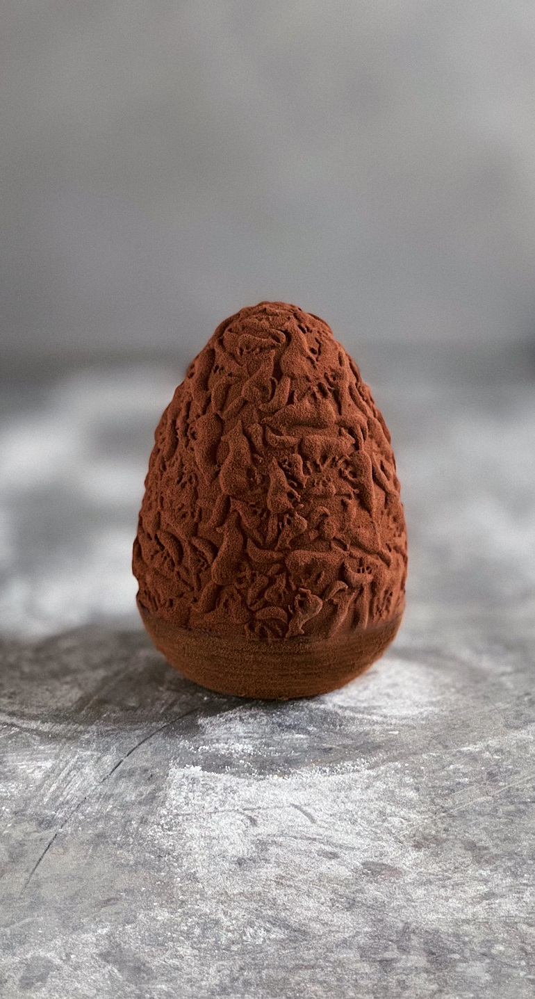 Les Fêtes de Pâques approchent à grands pas. Tout le monde profite de ce moment pour se retrouver en famille. Et qui dit famille dit bon repas, bon vin et friandise pour les enfants, tout ça dans la bonne humeur et la joie ! Cette année, Yann Couvreur propose une création un peu plus traditionnelle que celle des années précédentes. Fini les renards lovés dans leurs tanières : cette année, il propose sa version de l’œuf de Pâques. 70 % de chocolat noir et 33 % de chocolat au lait, cet œuf se compose d’un gianduja croquant renforcé au praliné noisette fleur de sel, installé entre 2 fines couches de chocolat sur les parois de l’œuf. À l’intérieur se trouve une multitude de fruits ! Cette année, plus encore que d’habitude, vous allez craquer devant cette somptueuse création.