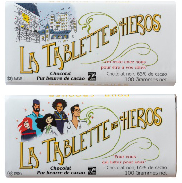 Conscients que La Chocolaterie BONNAT a pour vocation d’apporter des douceurs, mais pas de sauver le monde, Stéphane Bonnat et ses équipes souhaitent gâter ceux qui protègent et sauvent des vies. Cette chocolaterie de renom a produit une nouvelle tablette à l’image des médecins, infirmières, auxiliaires de santé de maisons de retraites, pompiers, policiers, gendarmes et facteurs... Pour la première fois dans son histoire, la Chocolaterie Bonnat disparaît du fronton de ses emballages. Ce sont ces héros du quotidien qui figurent en haut de l’affiche. C’est Franckie ALARCON qui a dessiné les illustrations sur l’emballage.