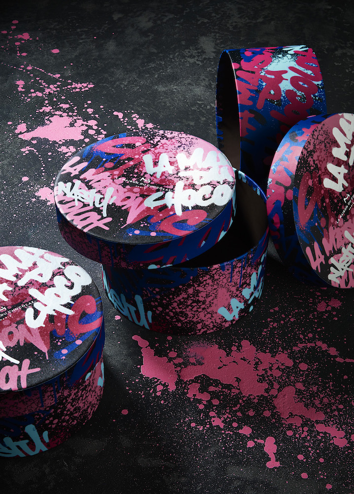 Choc is Chic certes, mais comment on traduit ça concrètement ? La Maison du Chocolat en a pourtant trouvé des solutions élégantes pour allier mode, tendance et chocolat. Le pionier du street art Nasty a par exemple élira résidence dans les murs de la Maison du Chocolat en juin pour une soirée riche en couleur où le slogan « Choc is Chic » sera décliné sur des chocolats en tous genre. L’artiste relookera ainsi les coffrets phares de la marque qui seront ensuite commercialisés.