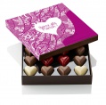 Dans un style plus classique mais toujours aussi efficace, le chocolatier Pascal Caffet revisite ses classiques et les dérives, ce qui est loin de nous déplaire. Au vichy rose pastel, signature de sa collection fête des mères 2015, succède un dentelle finement ouvragée rose vif, ajoutant dynamisme et peps aux coffrets de petits cœurs. Ils se déclinent en 9, 16 ou 25 bouchées, déclinées en trois parfums. Une solution efficace si on a peur de se tromper !