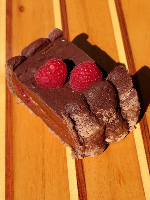- Verser la mousse au chocolat et aux framboises dans le moule.