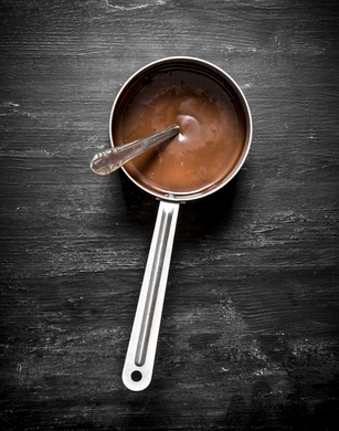 - Lorsqu'il bout, le verser sur le chocolat et remuer jusqu'à que celui-ci soit bien fondu.