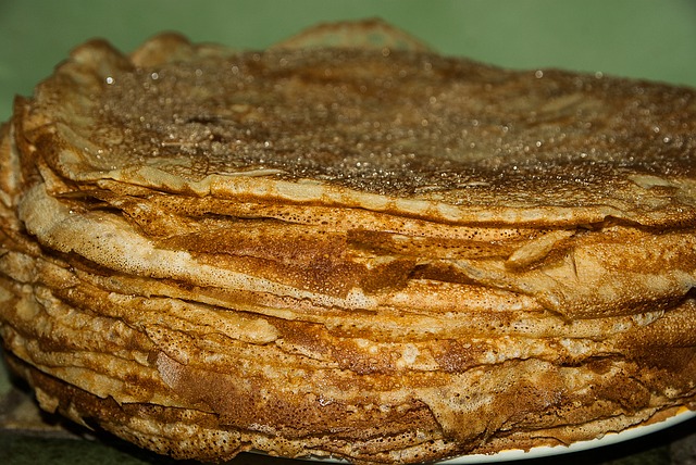 - Appuyer à l’aide d’une assiette toutes les 3 crêpes pour bien coller les crêpes entre elles.