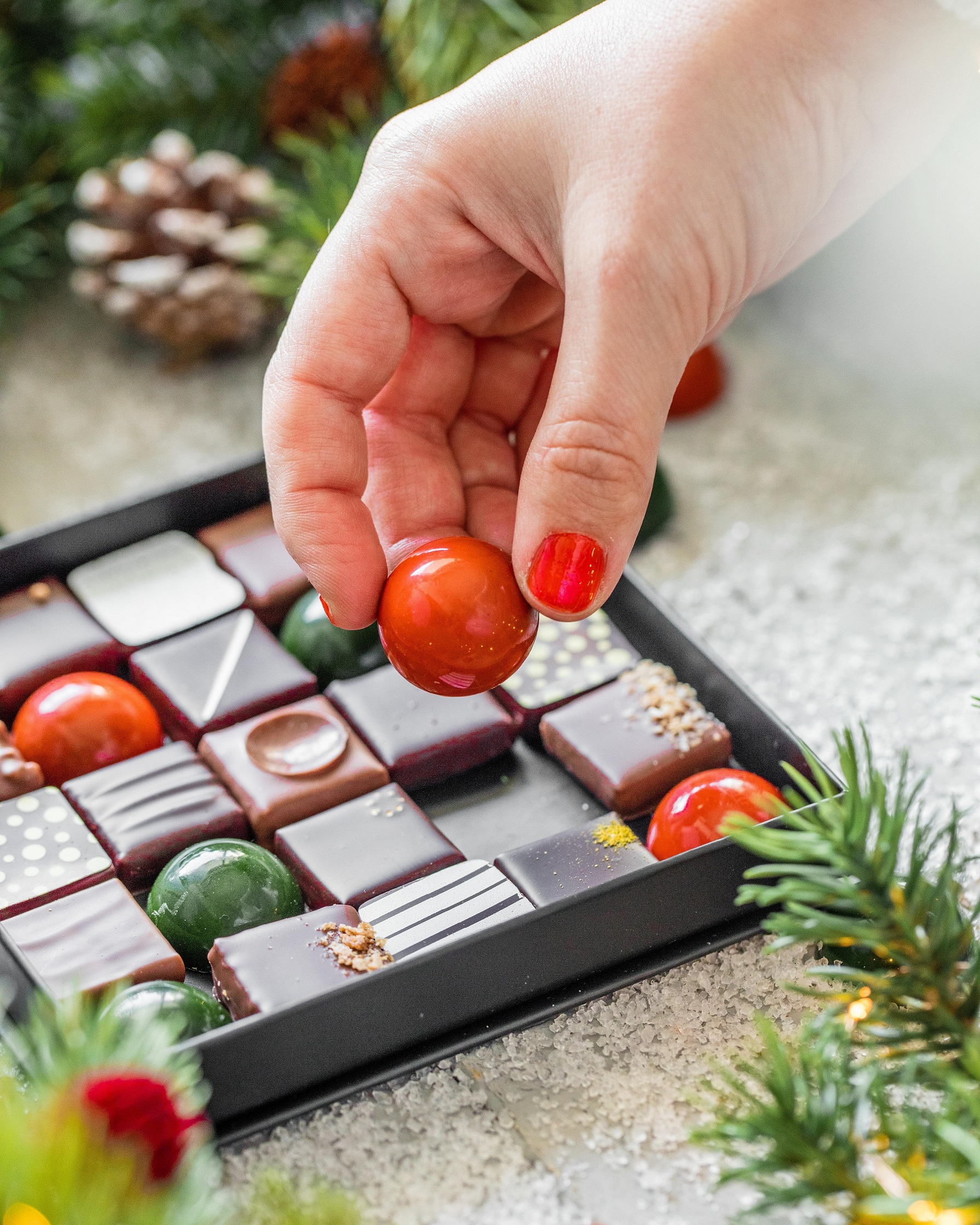 Sous le sapin, Zéphyr et Bobo seront accompagnés du produit phare de la saison, le coffret de Noël. A l’intérieur se trouvent les traditionnels bonbons de chocolat praline et ganaches, mais aussi deux saveurs inédites : Jaipur, une praline aux épices chaï recouverte de chocolat au lait grand cru de Tanzanie ; et Pimpinella, une ganache à la pomme et à l’anis enrobé de chocolat noir grand cru du Venezuela.