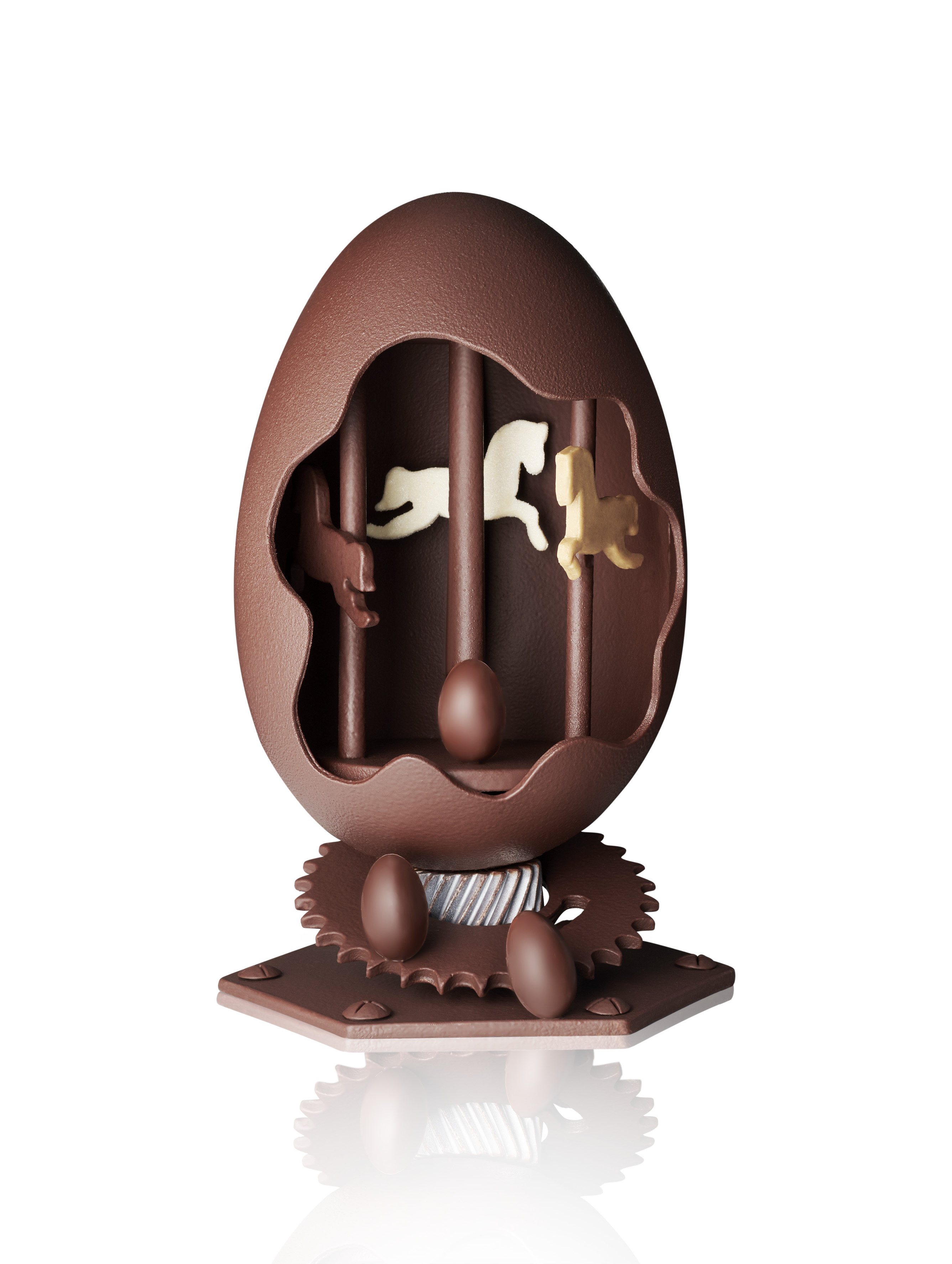 Pour les petits et pour les grands, de la gourmandise sous toutes ses formes sont aux programmes le week-end de Pâques. Pour l’occasion, le chef pâtissier Dominique Costa a revisité le manège favori des enfants pour créer l’Œuf Carrousel. Cette création est composée d’une fine coque de chocolat noir manjari 64 %, aux notes fraîches et acidulées de fruits rouges. Son intérieur met en scène trois petits chevaux dans un carrousel. Ils révèlent une déclinaison de chocolat blanc Opalys aux arômes de vanille, de chocolat Dulcey ainsi que de chocolat noir manjari 64 %. Cette année, le palace The Peninsula Paris invite également les visiteurs à découvrir un univers rempli de surprises chocolatées en rejoignant les rêves les plus extraordinaires de l’enfance.