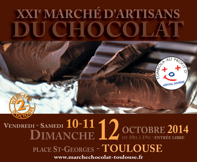 Cet évènement de Toulouse a été fondé par l’Union Régionale des Chocolatiers de la Pyrénées et des amateurs du chocolat en 1990. Au milieu de l’hypercentre toulousain sur la place Saint-George, cet espace est devenu le rendez-vous habituel des chocophiles. Le marché aux chocolats de Toulouse rassemble plus de 11 artisans chocolatiers, un artisan glacier ainsi qu’une maison de thés et un spécialiste des vins.