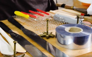 Voici l'ustensile idéal pour chocolatier, il s'agit du tapis de coupe et son cutter Si vous commencez des pièces artistiques, découpages, etc., je vous conseille en fait un tapis de coupe spécial. Vous trouverez cela au niveau bureautique. Cela vous permet de couper du carton, vos plastiques, etc. Bien sûr, ce qui va avec,...