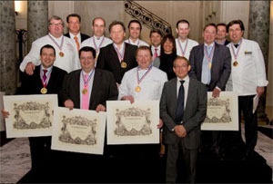 Médailles d'or de la mutuelle des cuisiniers de France remises par Christian MILLET à :