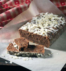 la farine et par‐dessus le bicarbonate de soude et la levure chimique. Ajouter les fruits secs et mélanger délicatement. Verser dans un moule rectangulaire de 30x13cm beurré.