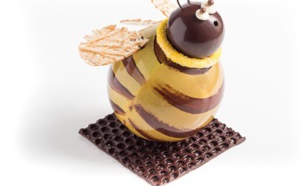 Cette année, l’Ecole Valrhona rend hommage à un chocolat emblématique de la Maison Valrhona, le Grand Cru Manjari 64%, pur origine de Madagascar. L’aspect général est un clin d’œil à la forêt de pierres de Tsingy, avec les cylindres de chocolat qui rappellent les « Kitsy », ces immenses et étroits couloirs de calcaire...