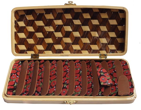 Non au chocolat commercial tue l’amour, oui au romantisme ! C’est la ligne que s’est fixé la chocolaterie parisienne. Dans un délicat écrin, les amoureux pourront déguster des fines languettes de chocolats noirs et au lait, garnies d’un praliné raffiné. Décorées de fleurs rouges, les languettes se dégustent comme des pétales et sont un clin d’œil tout en finesse au gourmand romanesque qui sommeille en chacun de nous.