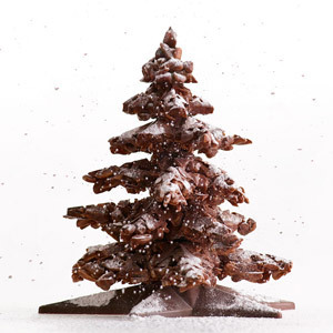 Le sapin connaît également une déclinaison aussi appétissante que chocolatée. Disponible en noir, en lait ou en blanc, le traditionnel roi des forêts de la chanson se présente sous une forme à la fois contemporaine et élégante qui constituera un décor de table aussi savoureux à croquer en fin de repas que joli à regarder pendant celui-ci.