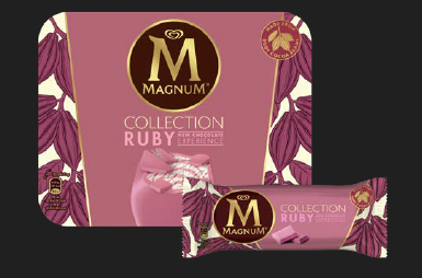 Magnum entraîne les amateurs de plaisir dans un univers de saveurs parfaitement équilibrées et totalement irrésistibles. Il offre l’accord gourmand parfait grâce au mélange du chocolat Ruby au goût fruité et d’une onctueuse glace au chocolat. Il est également associé à une pointe d’acidité apportée par la framboise.